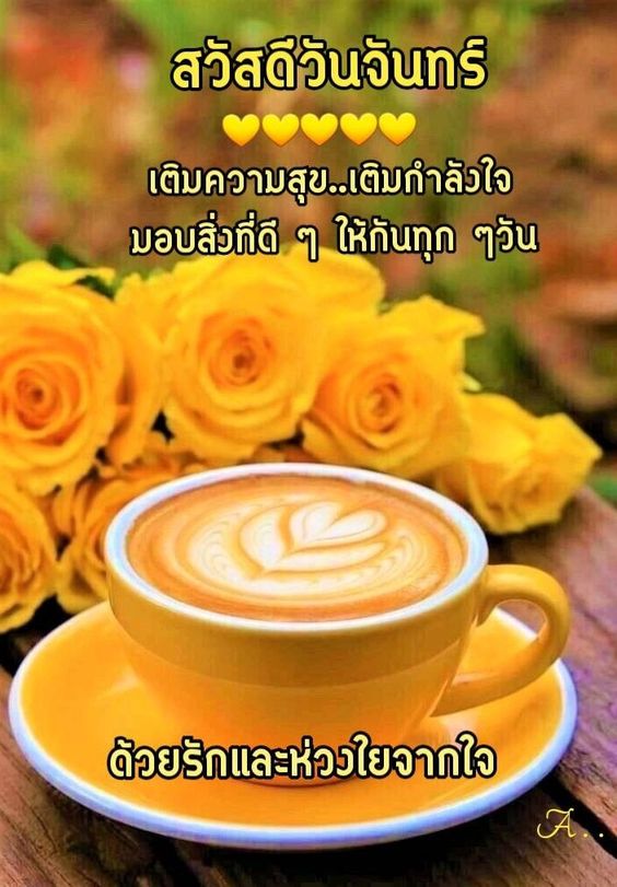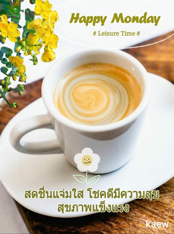 รูปภาพสวัสดีตอนเช้าวันจันทร์ กาแฟร้อนๆ ยามเช้า พร้อมคำอวยพร
