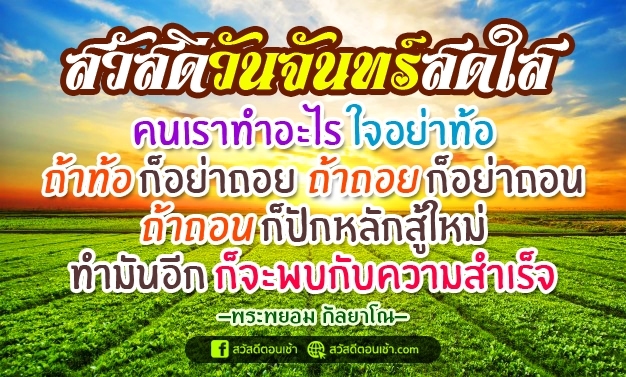 คนเราทำอะไรใจอย่าท้อ ถ้าท้อก็อย่าถอย ถ้าถอยก็อย่าถอน ถ้าถอนก็ปักหลักสู้ใหม่ ทำมันอีก ก็จะพบกับความสำเร็จ -พระพยอม กัลยาโณ-