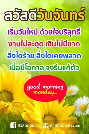 เริ่มวันใหม่ ด้วยใจบริสุทธิ์ งานไม่สะดุด เงินไม่มีขาด สิ่งใดร้าย สิ่งใดเคยพลาด เมื่อมีโอกาส จงรีบแก้ตัว good morning monday