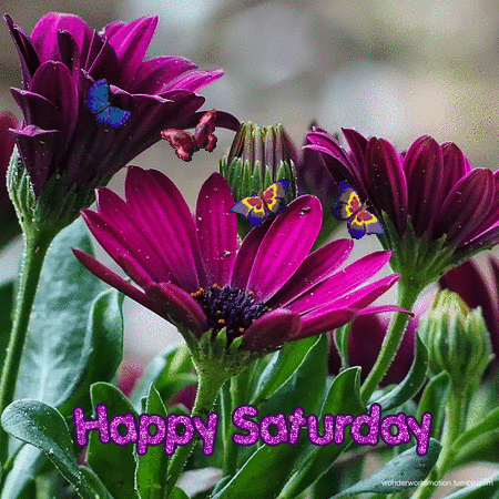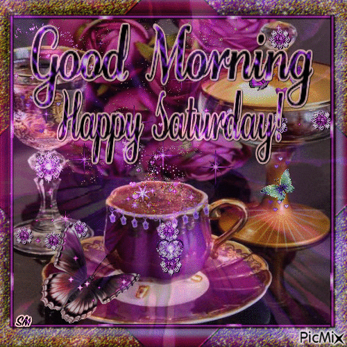 สวัสดีวันเสาร์ ภาษาอังกฤษ พร้อมภาพพื้นหลังสีม่วง มีแบบ GIF รูปสวย ใหม่ โหลดฟรี