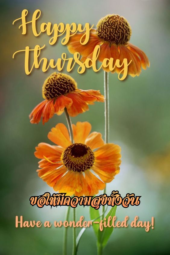สวัสดีวันพฤหัสบดี ภาษาอังกฤษ พร้อมภาพพื้นหลังสีส้ม มีแบบ GIF รูปสวย ใหม่ โหลดฟรี
