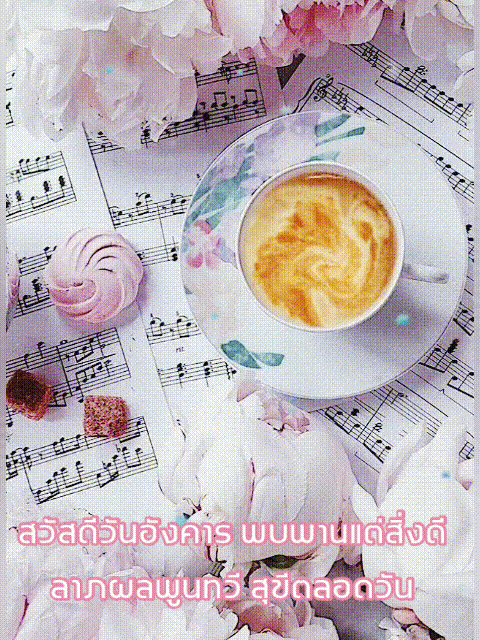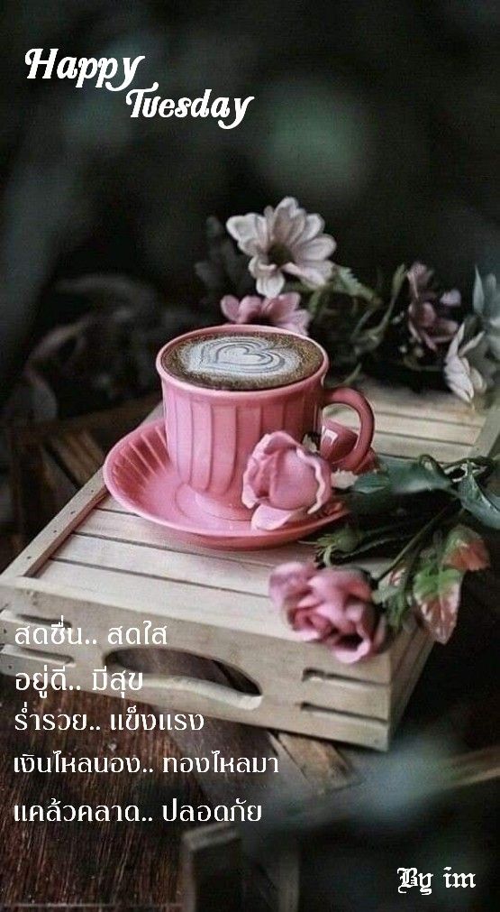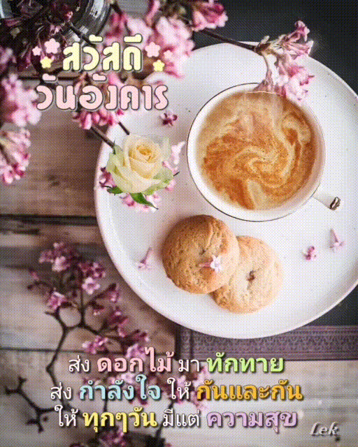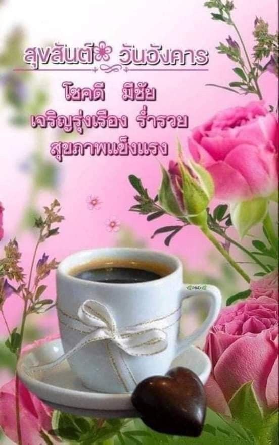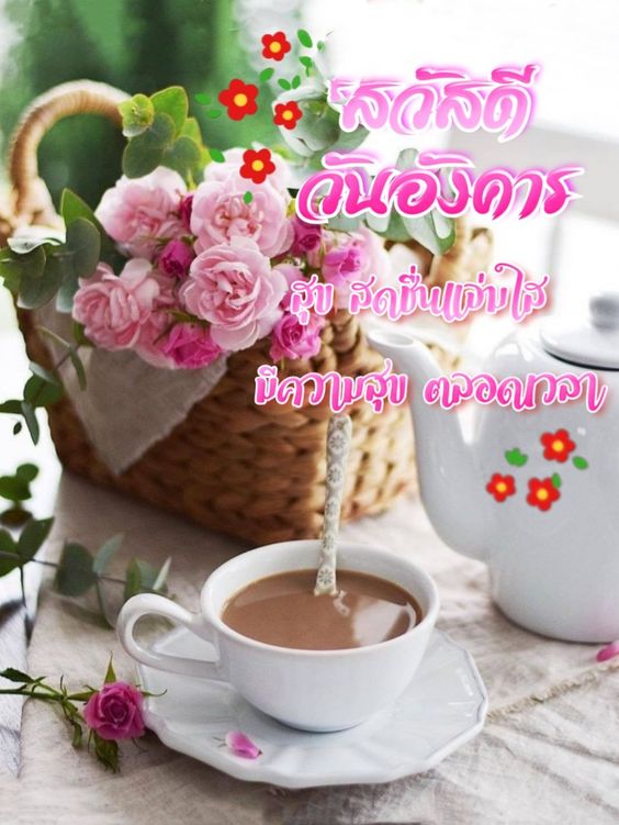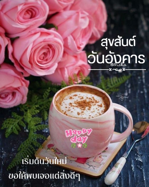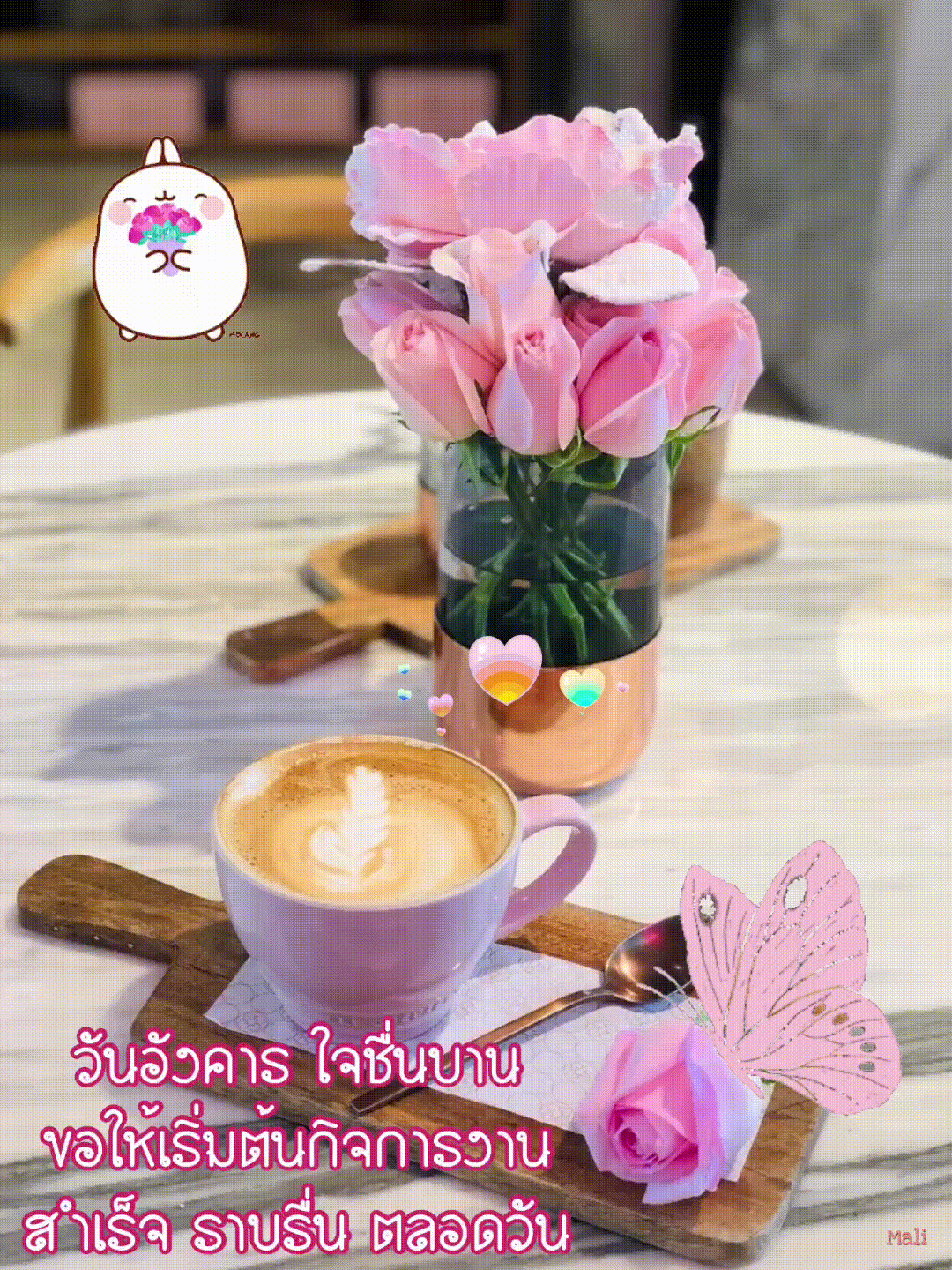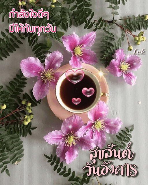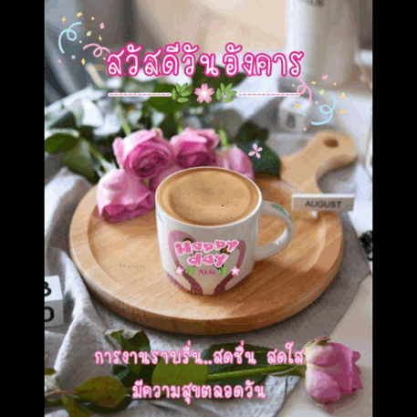 สวัสดีวันอังคาร กาแฟ ดอกไม้สวยๆ พร้อมคำอวยพร มีแบบ GIF รูปชัด โหลดฟรี