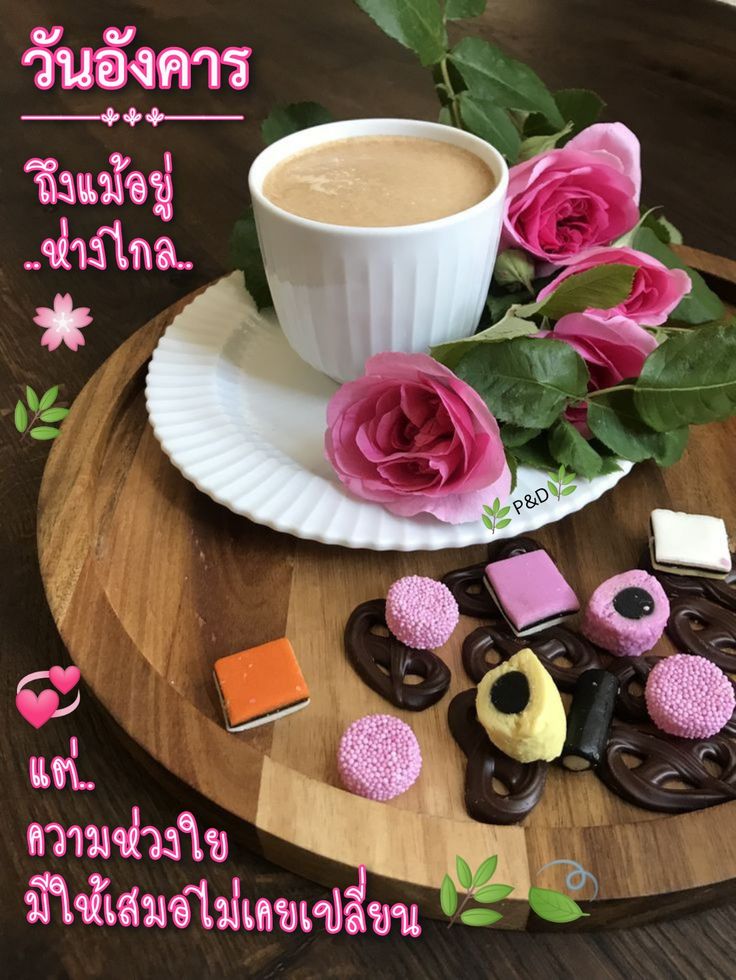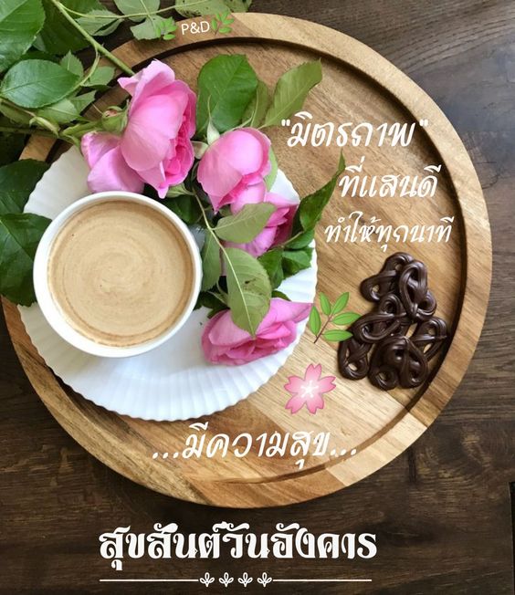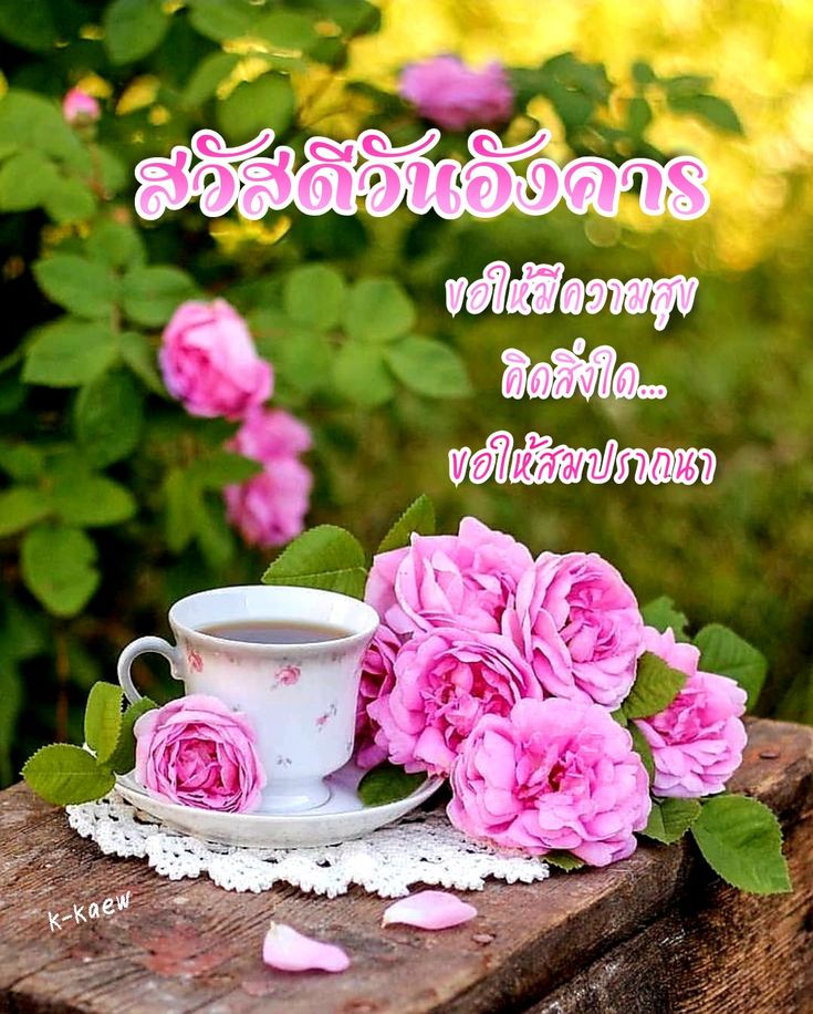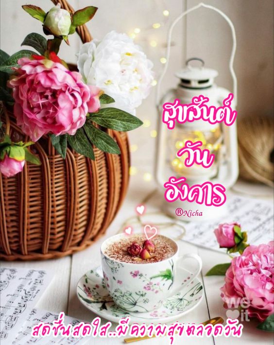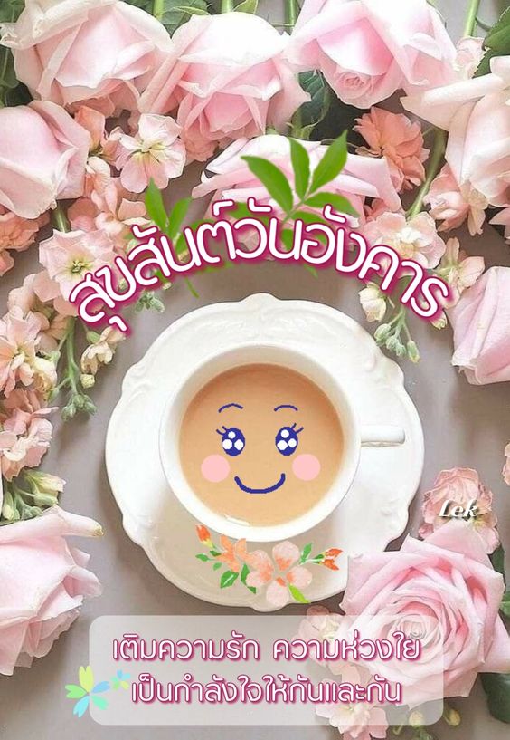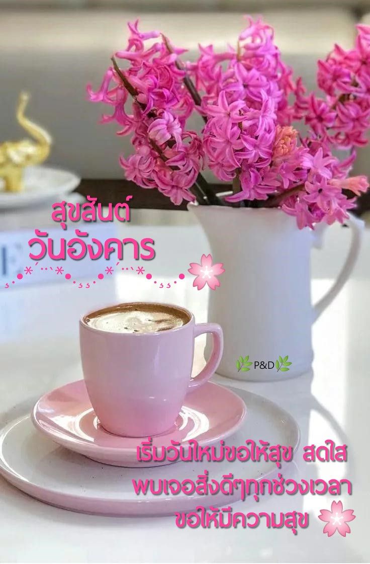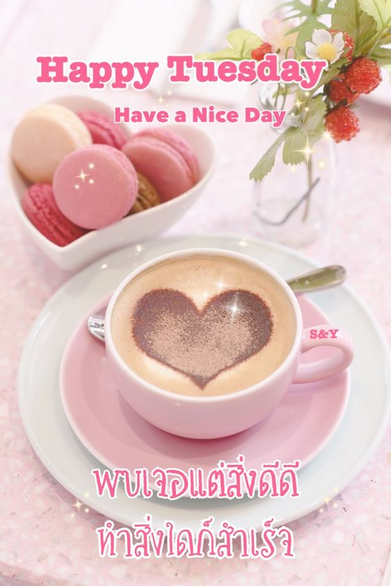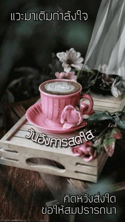สวัสดีวันอังคาร กาแฟ ดอกไม้สวยๆ พร้อมคำอวยพร มีแบบ GIF รูปชัด โหลดฟรี