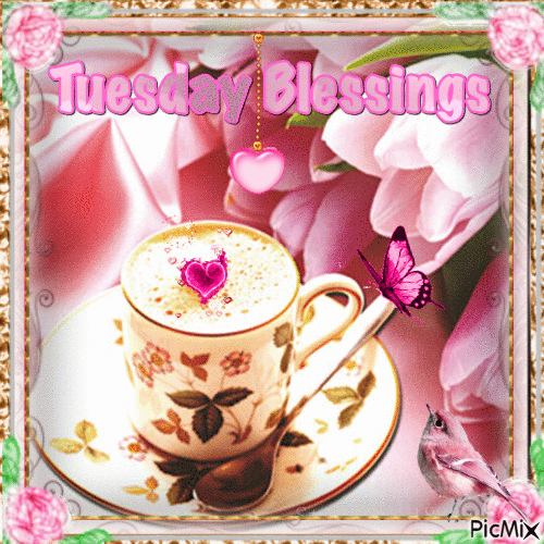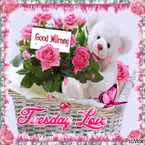 สวัสดีวันอังคาร ภาษาอังกฤษ พร้อมภาพพื้นหลังสีชมพู มีแบบ GIF รูปสวย ใหม่ โหลดฟรี